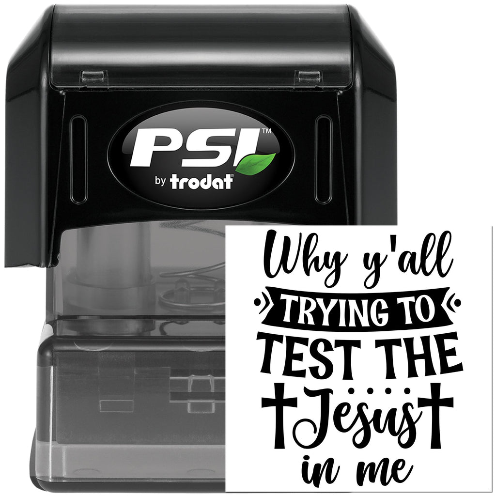Oown your faith-filled creativity with the Pre-Inked “Jesus In Me” Scrapbooking Stamp—designed to make every craft, classroom project, and keepsake shine with personality and purpose! This playful, black-and-white design features the fun hand-lettered phrase, “Why y’all trying to test the Jesus in me?” accented by crosses and tiny dots around the word “Jesus” for a fresh, modern, faith-forward look that pops on any page.
