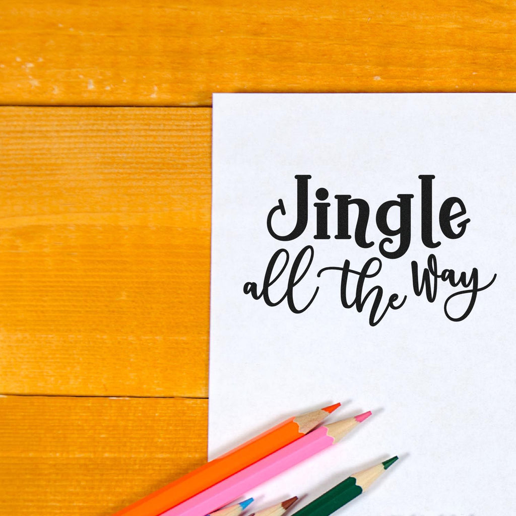 Deck your pages with holiday magic using the Pre-Inked “Jingle All The Way” Journaling Stamp — the must-have christmas bullet journal stamp and holiday scrapbook stamp for festive planners and memory keepers! This 1-5/8" square stamp delivers a bold “Jingle all the way” design in crisp black on a clean white backdrop: “Jingle” dances in a chunky, playful serif while “all the way” flows in elegant cursive, creating a joyful headline that instantly pulls your holiday spreads together.