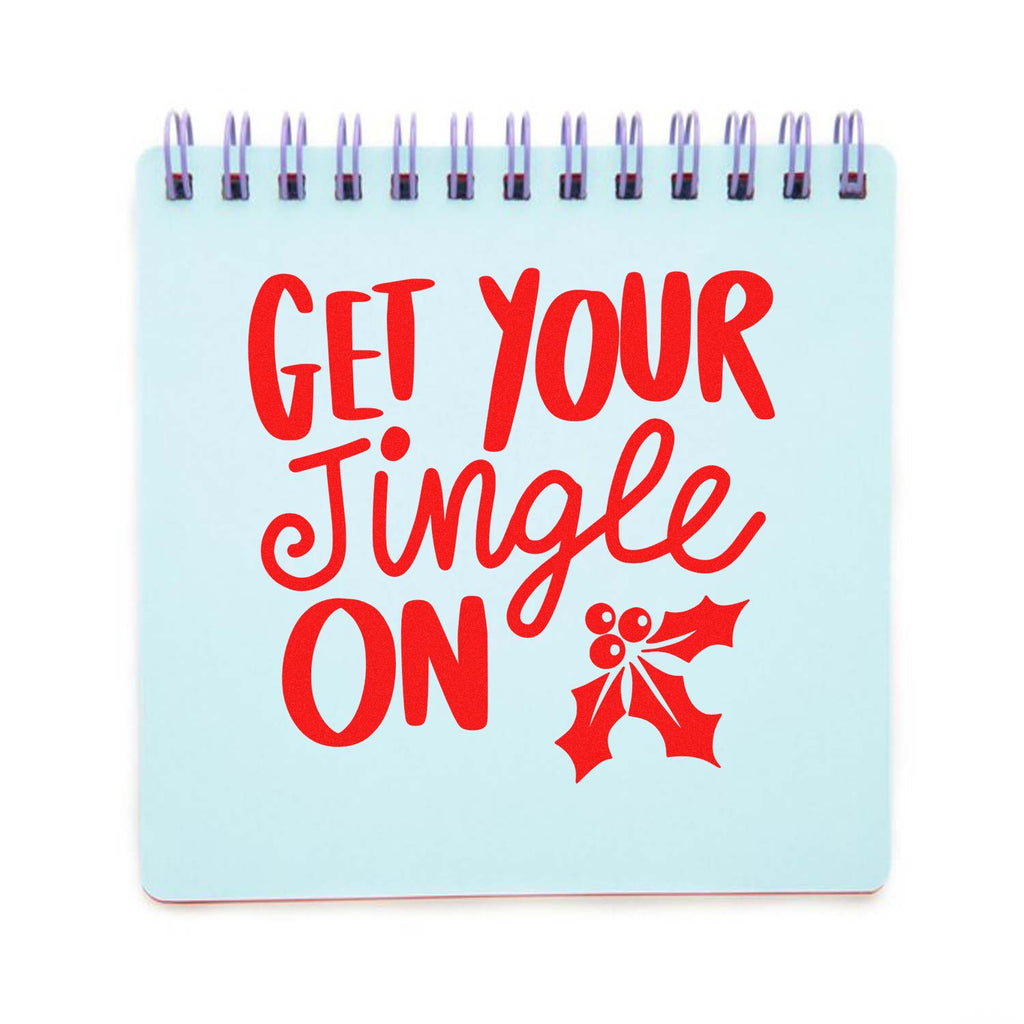 - Festive-design: Bold, hand-lettered “Get Your Jingle On” with a tiny holly sprig creates a modern, cheerful black-and-white impression ideal for cards, tags, and bulletin board accents.