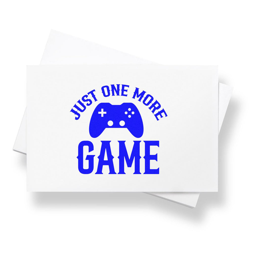Perfectly sized at 1-5/8" square, this sleek black gamepad silhouette design with the playful “JUST ONE MORE” curved above and bold “GAME” below gives cards a quirky, modern vibe that delights gamers and recipients alike.