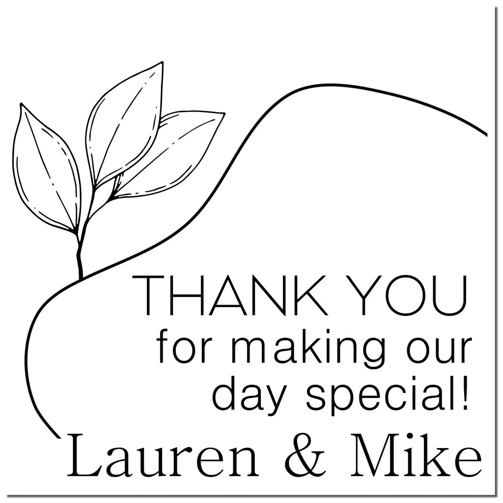 Elevate your business correspondence with our Premium Pre-Inked Leafy Lines Thanks Customized Thank You Stamp - where elegance meets efficiency in a perfect 1-5/8" square design.