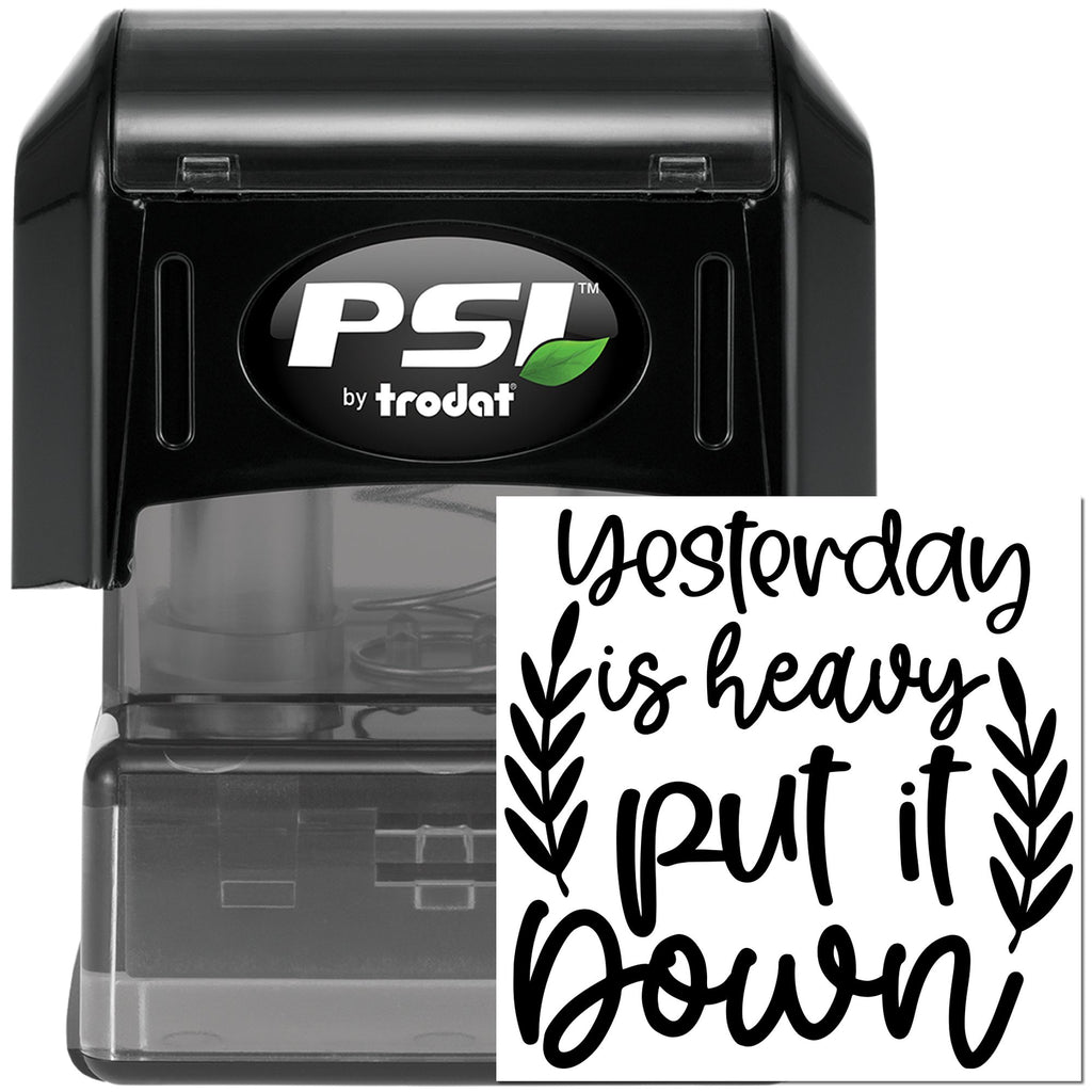 Uniquely uplifting — the Let It Go Pre-Inked Craft Stamp turns every card, tag, and scrapbook page into a tiny celebration of release and joy, featuring breezy hand-lettered script that reads “Yesterday is heavy—put it down” flanked by two cheerful fern leaves in a clean black-and-white vibe.