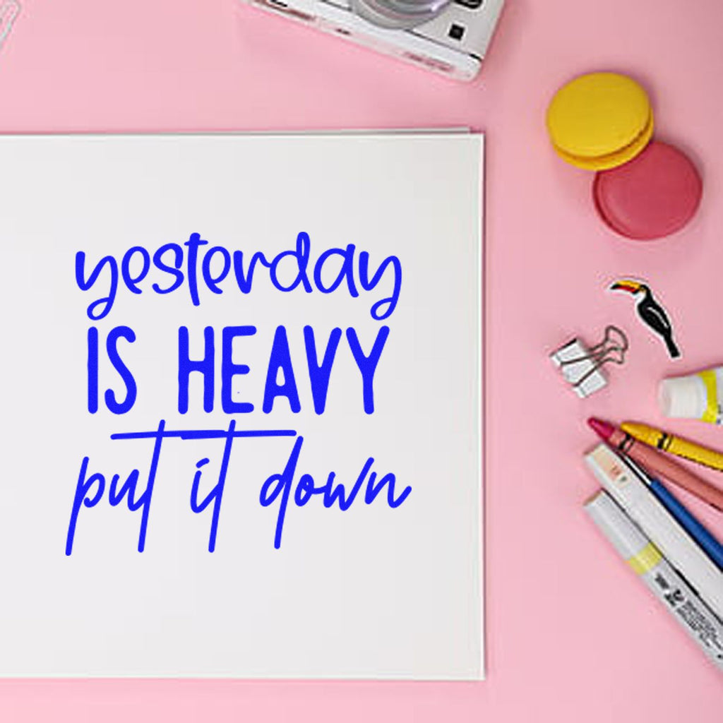 Transform your stamping routine with the Pre-Inked Let It Go Postcard Stamp — a playful 1-5/8" square that makes every postcard pop with personality and precision. Featuring a bold black-on-white canvas that reads like handwritten art — “yesterday” and “put it down” in flowing script and “is heavy” in confident block letters — this stamp delivers a lively, uplifting message in one crisp impression.