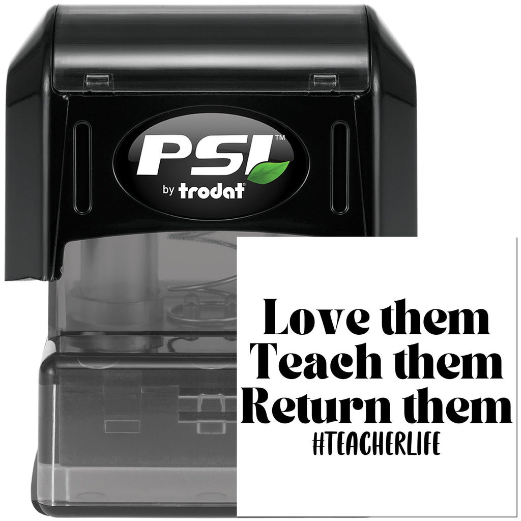 - Friendly design: Bold black-and-white text reads “Love them,” “Teach them,” “Return them” with a handwritten “#TEACHERLIFE” below: cheerful, readable, and instantly recognizable to students.