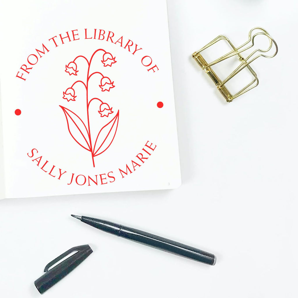 Elevate Your Book Collection with Our Customized Pre-Inked May Lily of the Valley Book Property Stamp!