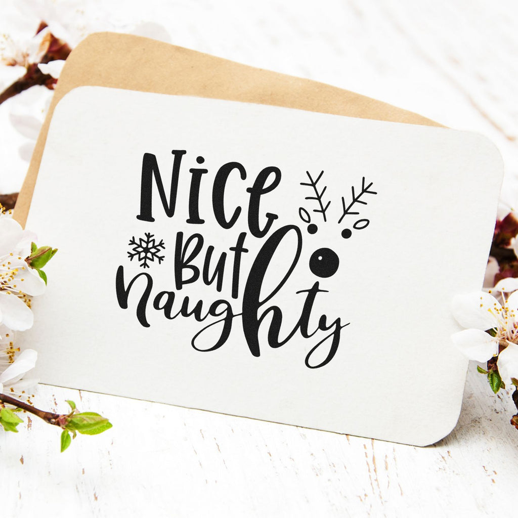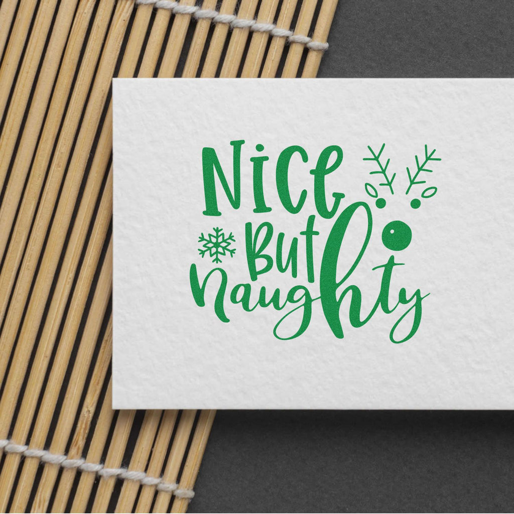 The pre-inked format saves precious time, cuts down on waste, and ensures clean, reliable impressions on a variety of papers and card stocks. Whether you’re building holiday bundles, subscription boxes, or limited-edition card sets, this “Nice but Naughty” stamp keeps your workflow fast and your designs delightfully on-theme.