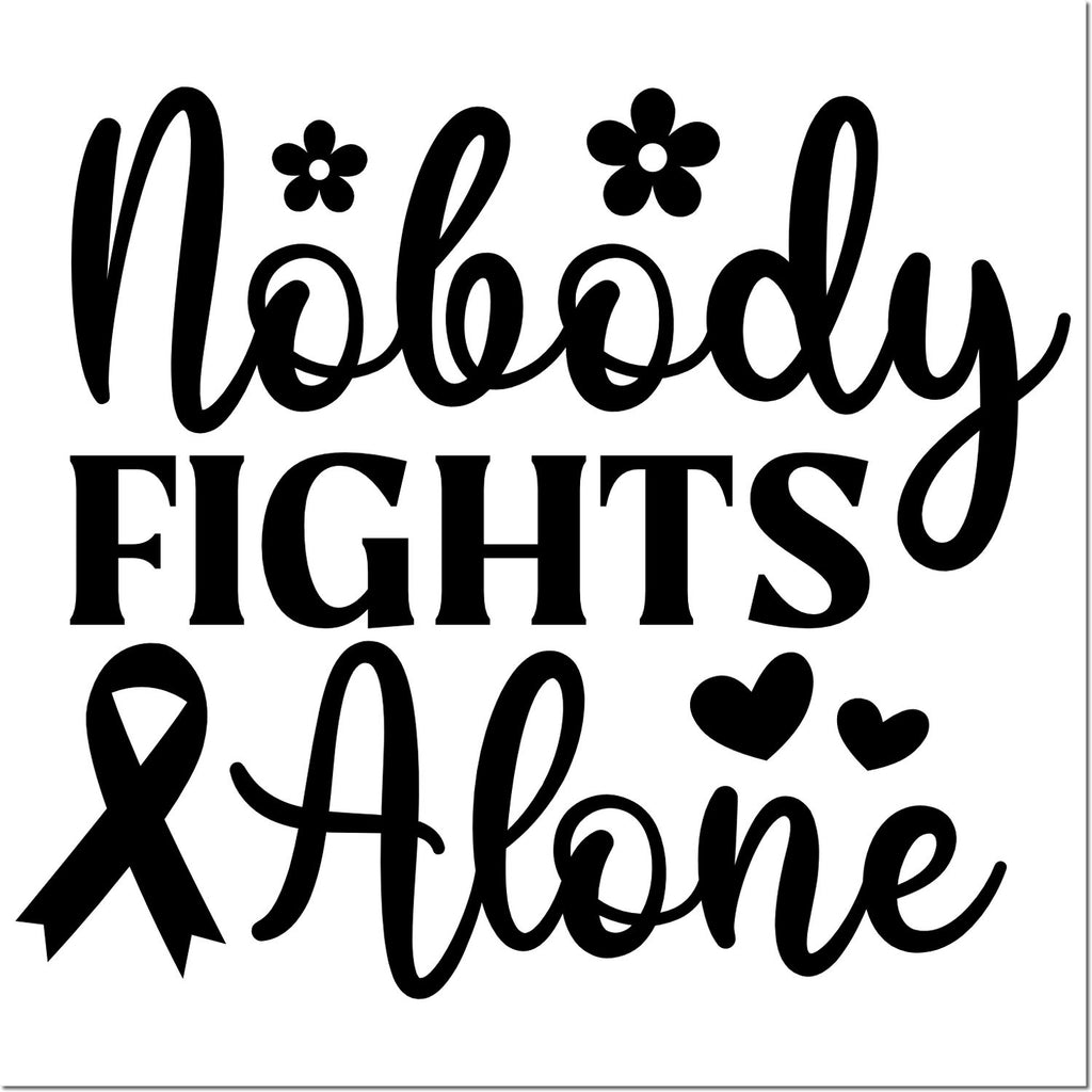 Sized at a versatile 1-5/8" square, this cancer awareness craft stamp features the uplifting phrase “Nobody Fights Alone” in bold, playful lettering sprinkled with tiny flowers and hearts. A cheerful awareness ribbon snuggles beside the word “Alone,” creating an instantly recognizable symbol of unity for cancer warriors, first responders, and healthcare heroes.