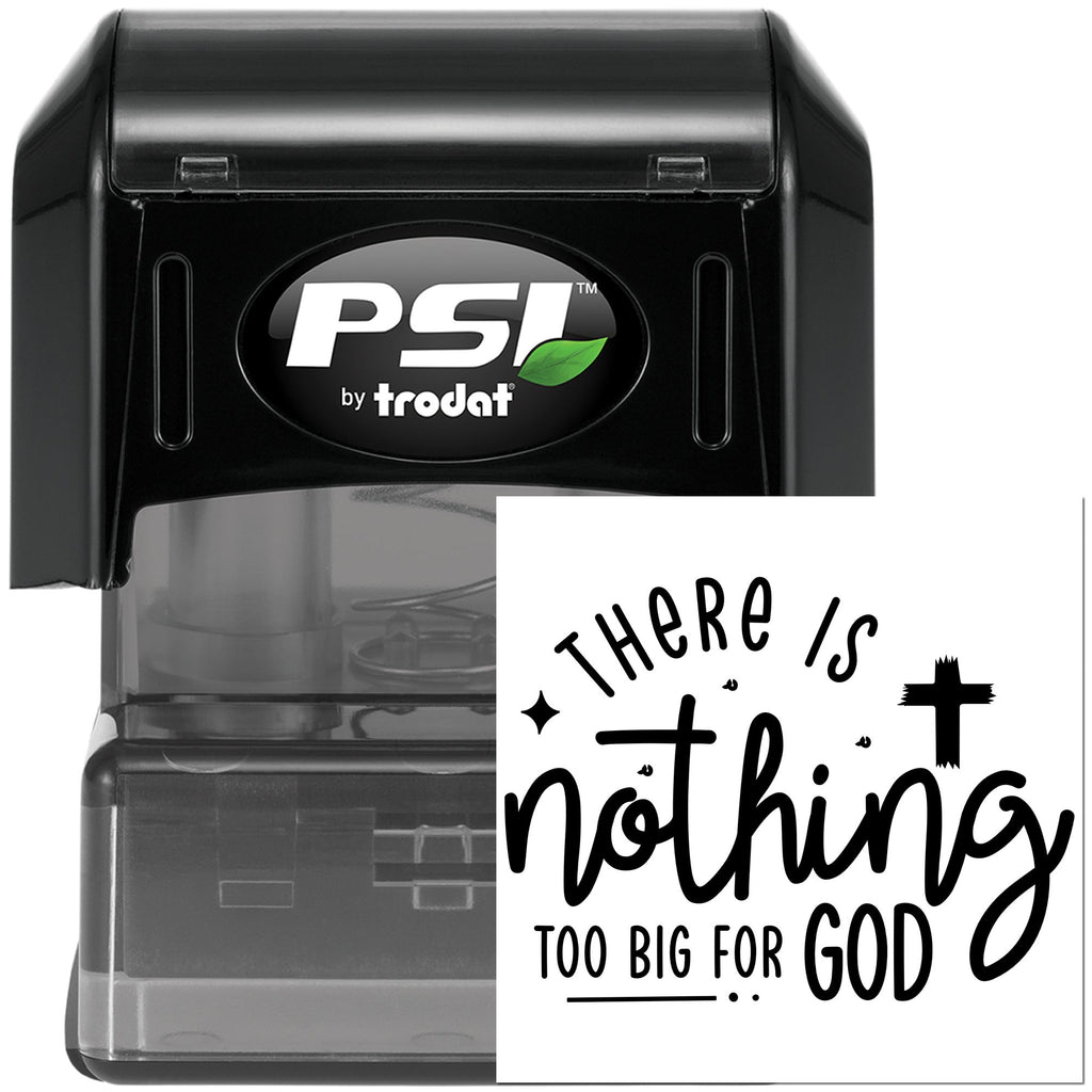 The design features a bold black script sweeping across a clean white field: “Nothing is too big for God.” — the oversized flowing word “Nothing,” a cross forming the “t,” and playful stars and dots that sprinkle a cheerful, uplifting vibe perfect for weddings, corporate motivational events, classroom celebrations, or church gatherings.