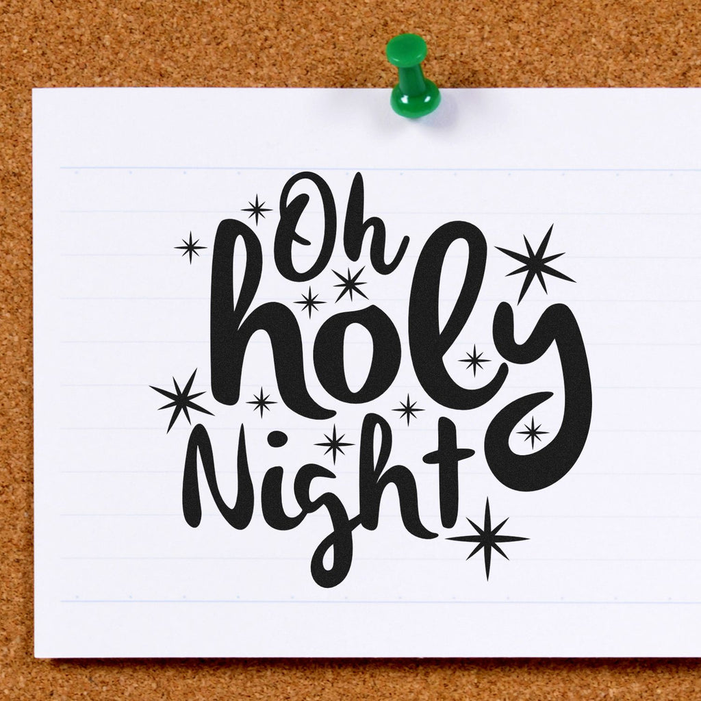 WSay “Merry Christmas” with meaning in every impression using our Pre-Inked “O Holy Night” Card Stamp, created especially for Christian crafters and busy church offices. This playful, hand-lettered design features a flowing “Oh holy night” script surrounded by twinkling starbursts in a bold black-and-white style that’s both festive and beautifully minimalist—perfect for Christ-centered Christmas cards, bulletins, and invitations. 1-5/8" square size gives you a standout focal point without overwhelming your layout.