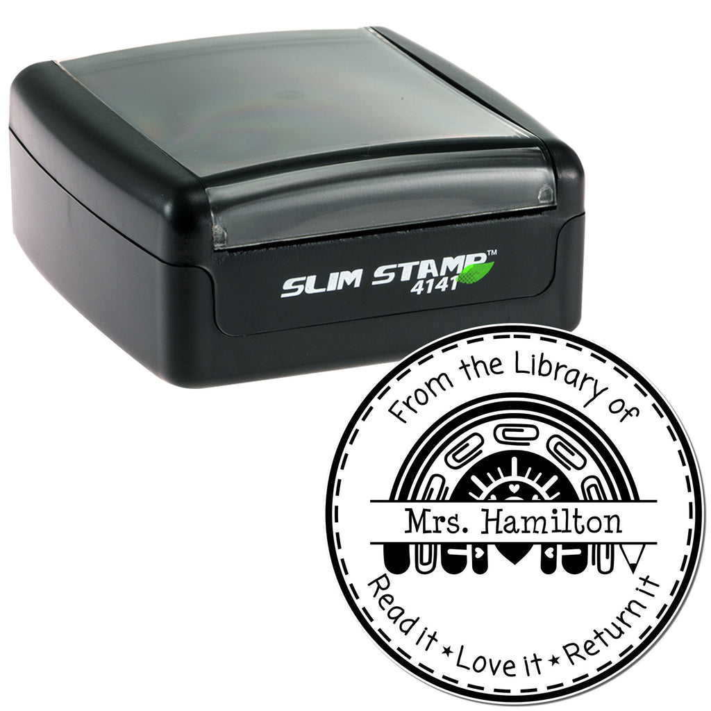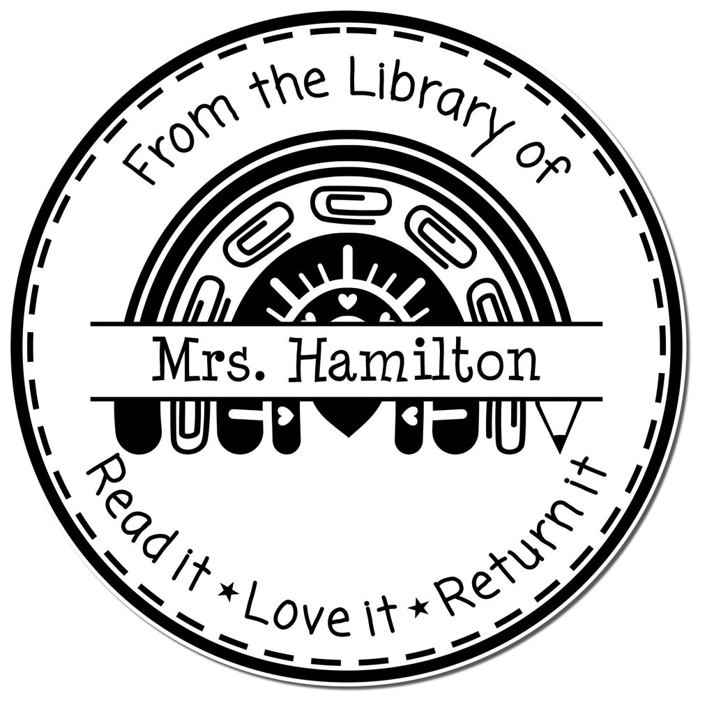 - PERSONALIZED CLASSROOM ORGANIZATION - Create a professional and organized library system with this pre-inked stamp featuring a beautiful rainbow book design. Perfect for marking classroom materials and tracking borrowed books.
