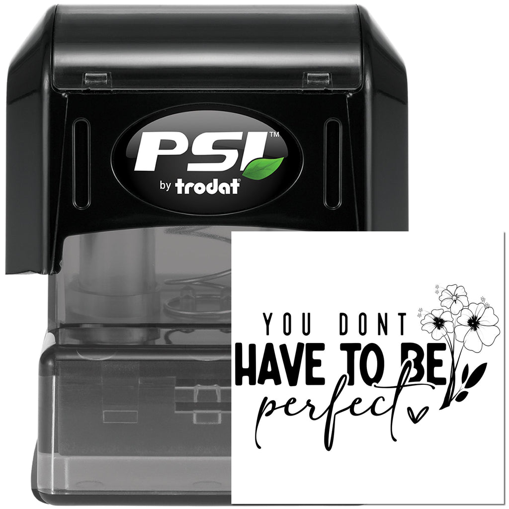 KSay hello to effortless charm with the Pre-Inked Perfectly Imperfect Flower Scrapbooking Stamp — a 1-5/8" square floral design featuring bold playful lettering swirls reading “You don’t have to be perfect,” a hand-drawn bouquet and a tiny heart that adds instant whimsy to cards, tags, layouts, and journals.