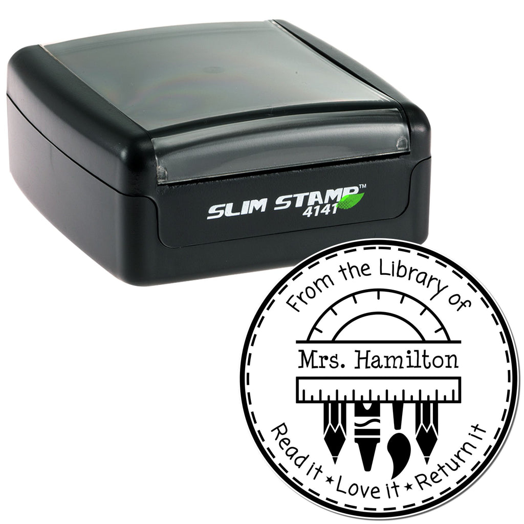 Organize Your Classroom Library For teachers who maintain a classroom library, our Pre-Inked Protractor Customized Teacher Bookplate Stamp is a must-have! Use it to mark books, ensuring they are easily identifiable as belonging to your classroom. This reduces the chances of books being misplaced and helps instill a sense of ownership among your students.