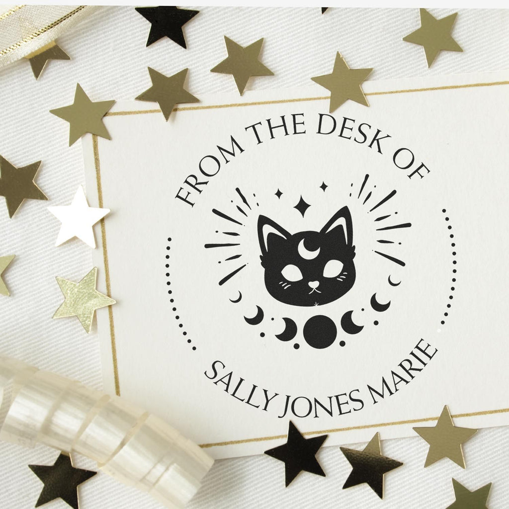 Pre-Inked Radiant Cat Personalized Name Stamper Highlights and Features