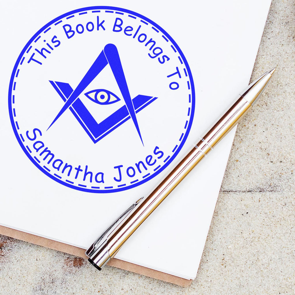 Personalize Your Library and Belongings Imagine the satisfaction of marking your books with a personalized touch! Our book name stamp features a beautifully designed center image of a Reflective Masons, surrounded by a double ring circular border. The phrases "This Book Belongs To," "From The Library of," and "Ex Libris" elegantly arch around your name or a custom saying, making each stamp a unique reflection of your identity. This not only helps in identifying ownership but also adds a personal flair to your library collection.