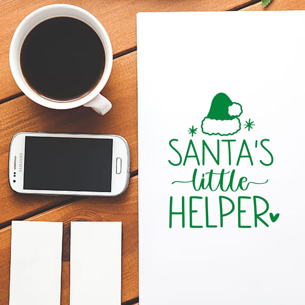 - Design-charm: Features a fluffy Santa hat, glittering star accents, and playful “Santa’s little helper” lettering in a compact 1-5/8" square that looks adorable on any project.