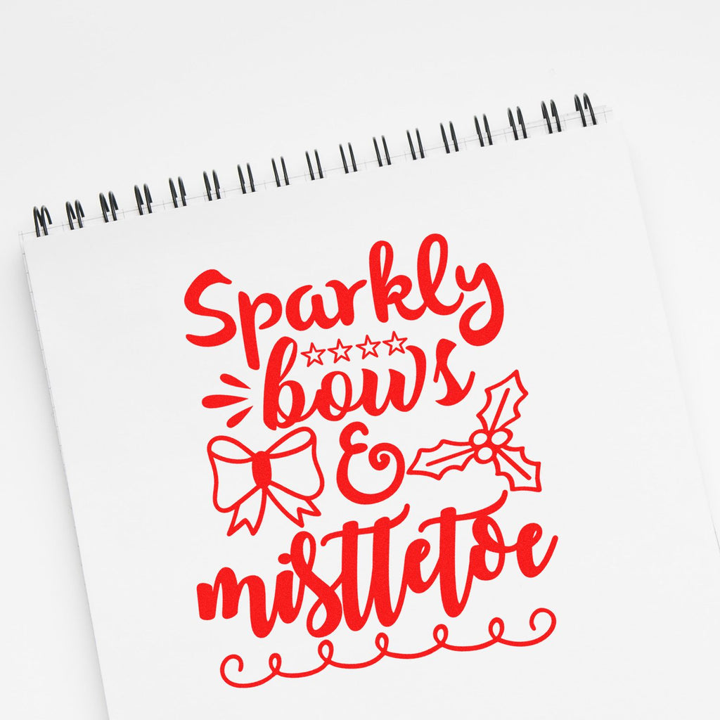 Bring instant holiday magic to every card, tag, and package with our Pre-Inked Sparkly Bows Mistletoe Note Card Stamp, featuring the playful hand-lettered phrase “Sparkly bows & mistletoe.”
