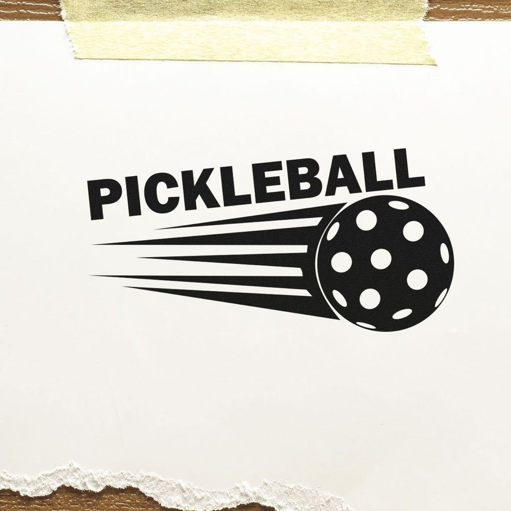 This custom pre-inked shipping stamp delivers crisp, repeatable impressions up to 15,000 times in five vibrant ink colors, so you get sharp dotted-ball detail, tapering speed trails, and a high-impact PICKLEBALL headline without smudges or messy refills — perfect for ecommerce sellers who want consistent, professional shipment inserts and tournament organizers needing fast, memorable event stamping.