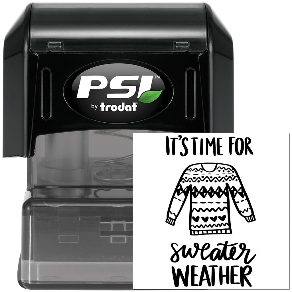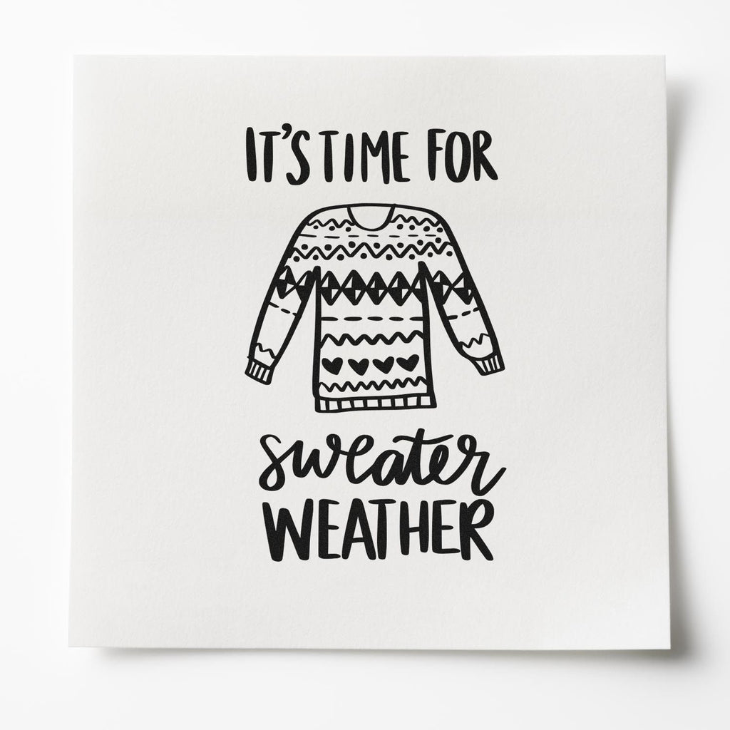 Vibrant sweater-weather charm for every fall place setting — meet the Pre-Inked Sweater Weather Vibes Place Card Stamp, a 1-5/8" square stamp that stamps a doodled sweater with zigzags, hearts, and dotted lines framed by “Time for” above and breezy “sweater weather” below, all in crisp black on white for a cozy, boutique look.
