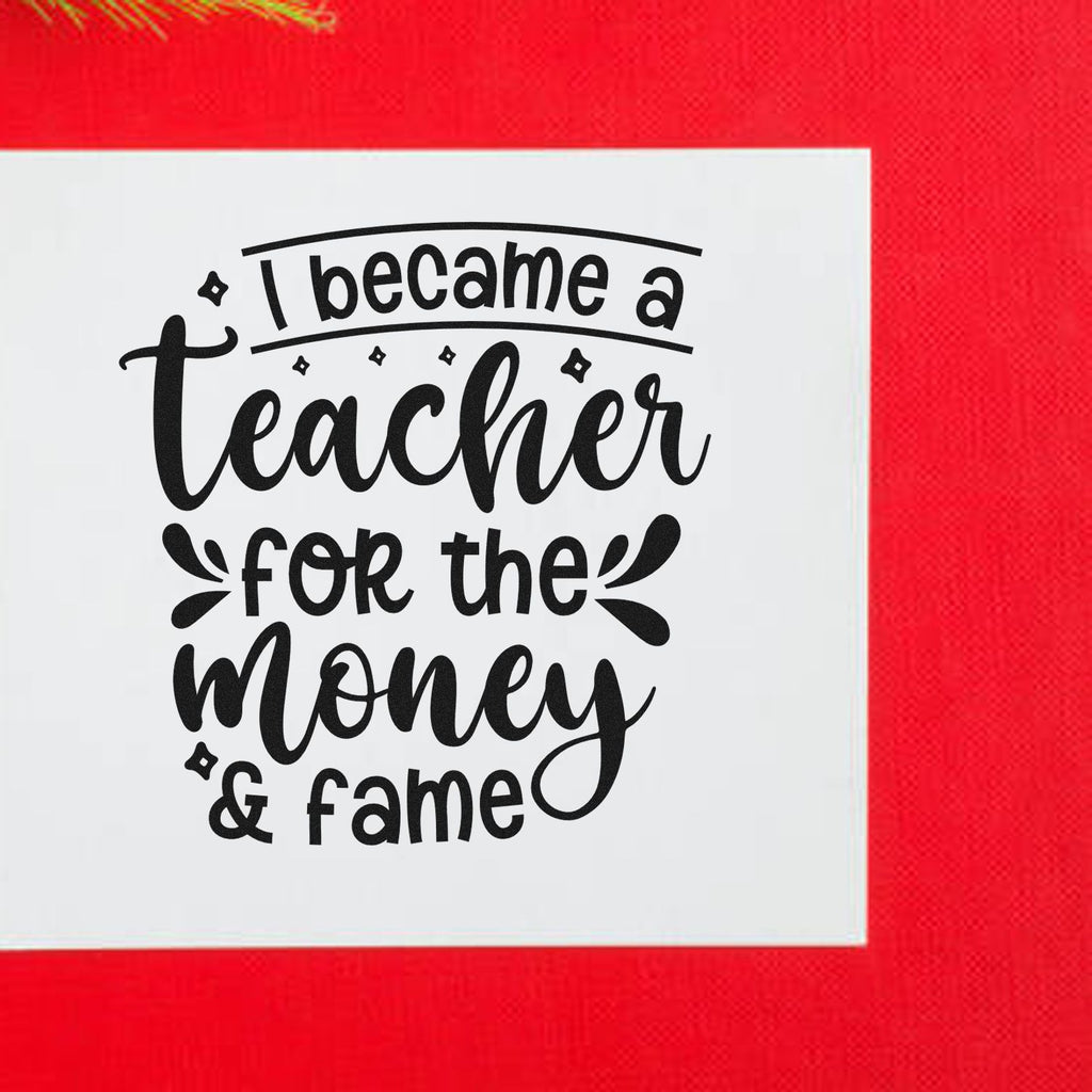 Tired of dull grading tools and boring craft stamps? Meet the Pre-Inked “I Picked Teaching for the Glory and the Money” Crafting Stamp, your new favorite sidekick for grading marathons, classroom laughs, and handmade paper goodies that pop with personality! This playful 1-5/8" square stamp features bold, colorful text on white with swirly script, chunky letters, starbursts, and splash accents—perfect for teachers who get the joke and love a little sass with their standards.