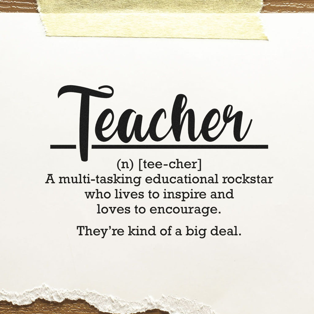 RSaise the volume on everyday encouragement with our Pre-Inked Teacher Rockstar Inspiration Postcard Stamp, designed to make every note, postcard, and paper shout, “You’re amazing!” This 1-5/8" square stamp features a playful, swooping “Teacher” with a sunny underline and a fun dictionary-style definition: (n) [tee-cher] A multitasking education rockstar who lives to inspire and cheer others on. Final note: Totally a big deal. It’s the perfect way to celebrate the true star of the classroom—you.