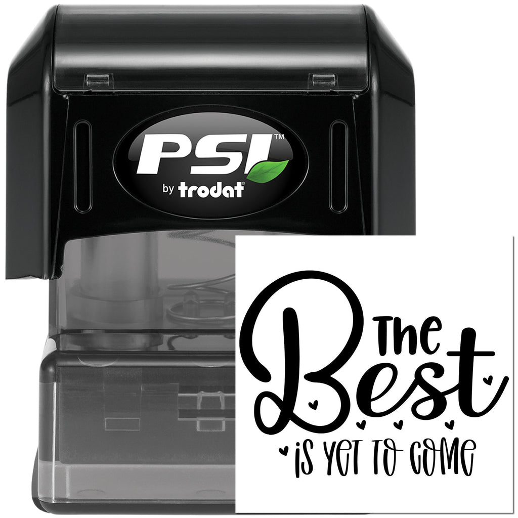 The bold, hand-lettered banner shouts “The Best” in swooping cursive with the cheeky line below: “is yet to come,” sprinkled with tiny heart accents for an optimistic, heartfelt vibe — ideal as a teacher appreciation stamp or a finishing touch on handmade cards, gift tags, and scrapbooks.
