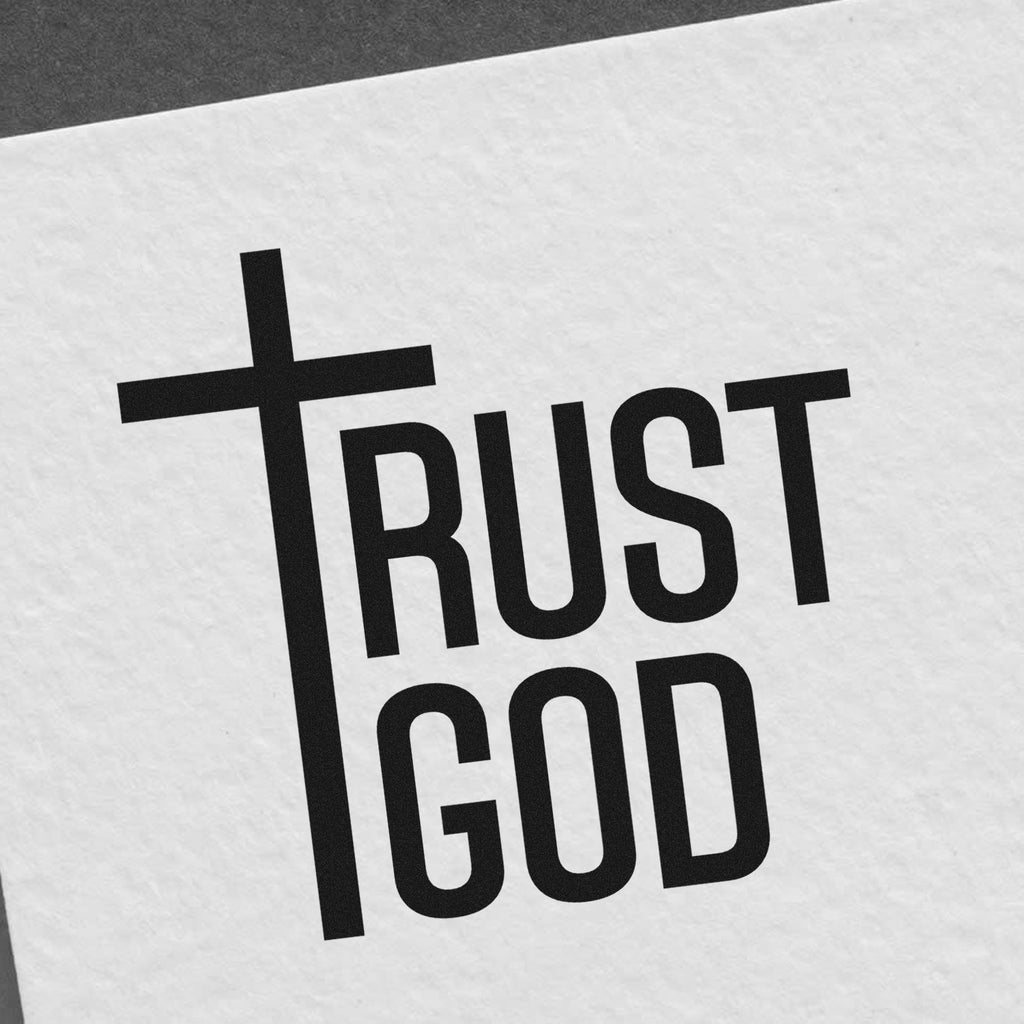 - Professional: Sharp, high-contrast 1-5/8" square imprint features a bold black cross and chunky “TRUST GOD” lettering on a clean white look for a polished, minimalist vibe.