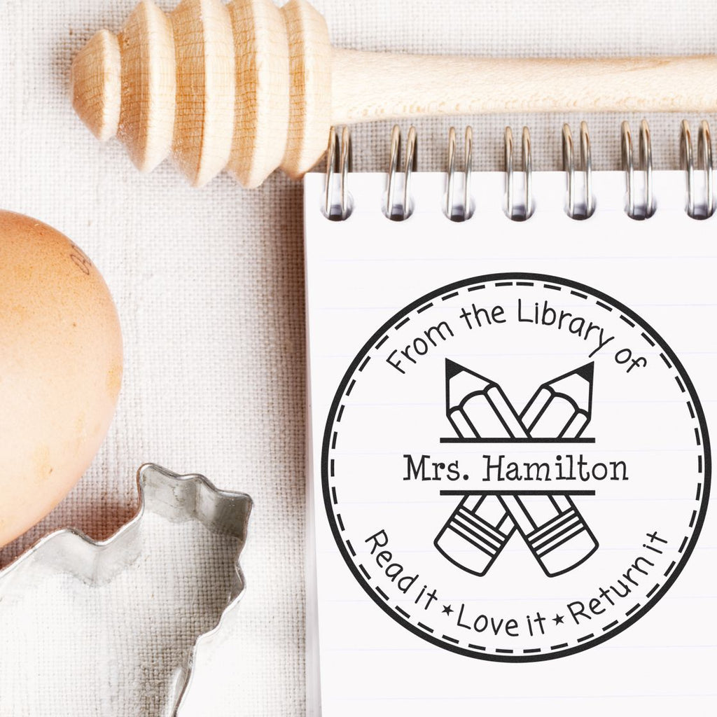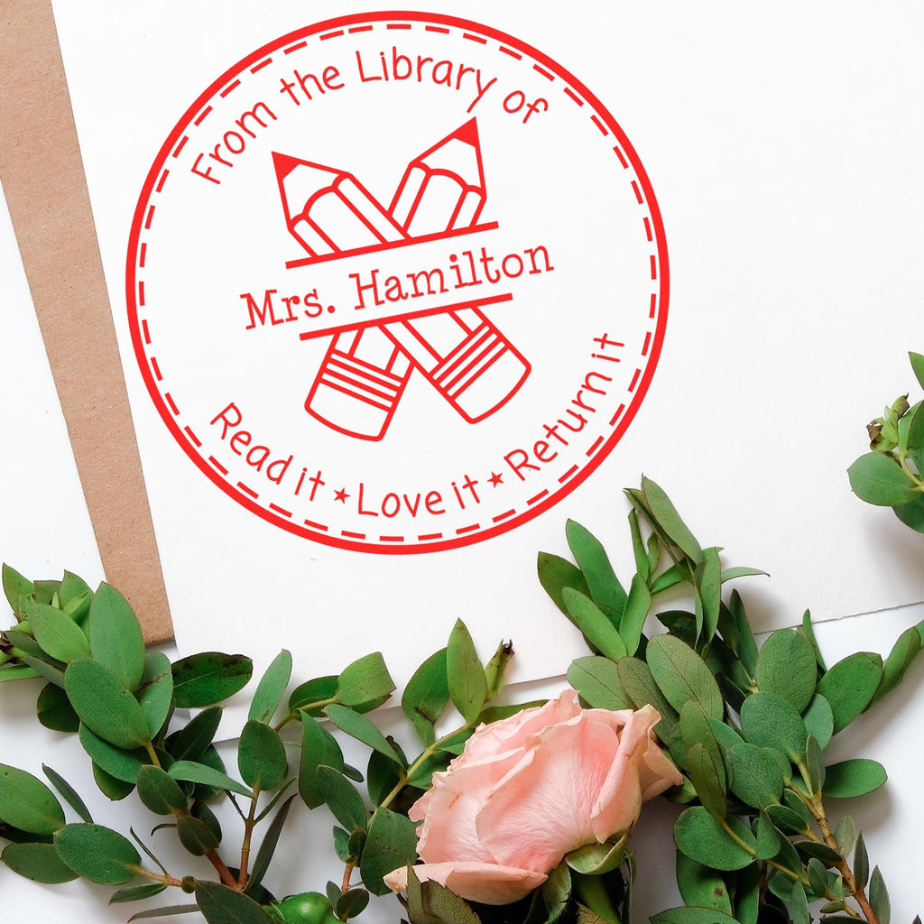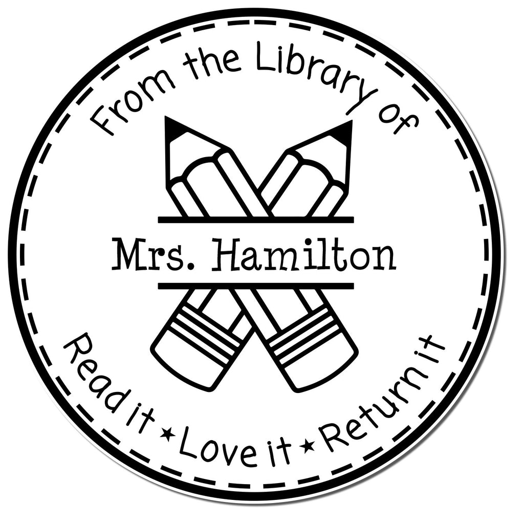 Pre-Inked Two Pencils Customized Teacher Classroom Library Stamp Highlights and Features