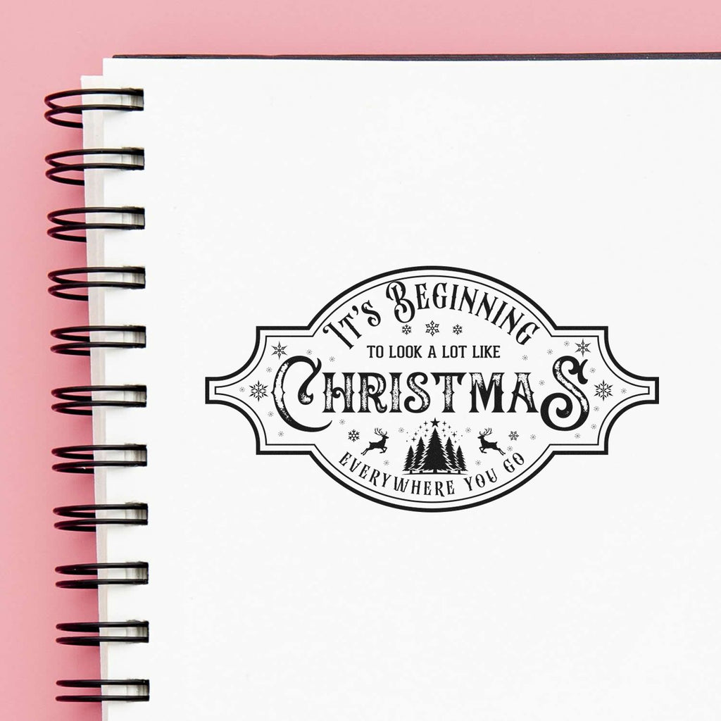 - Elevate branding: The retro oval “It’s beginning to look a lot like Christmas” design with reindeer, snowflakes, and pine grove adds nostalgic charm to thank-you notes, inserts, and wholesale mailers.