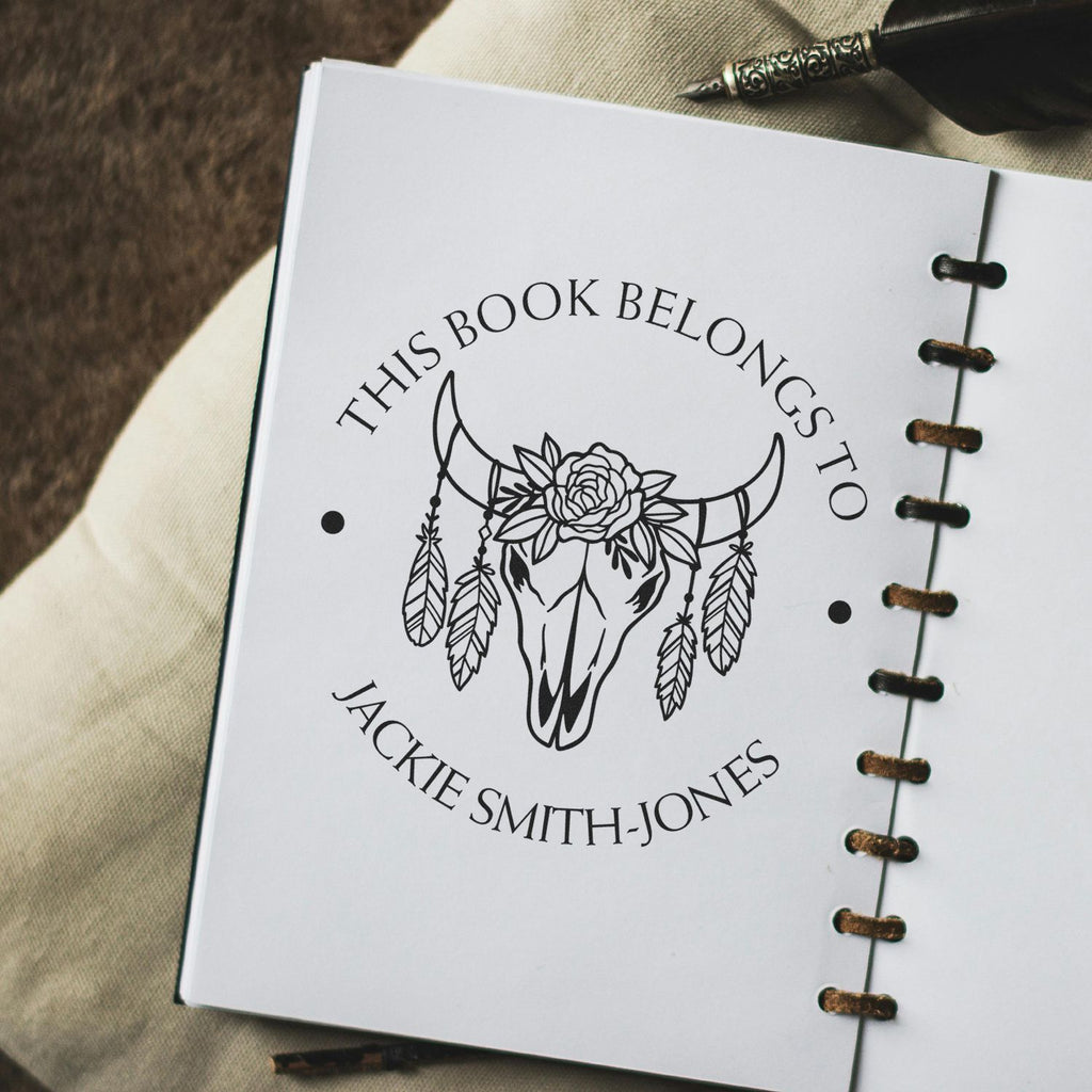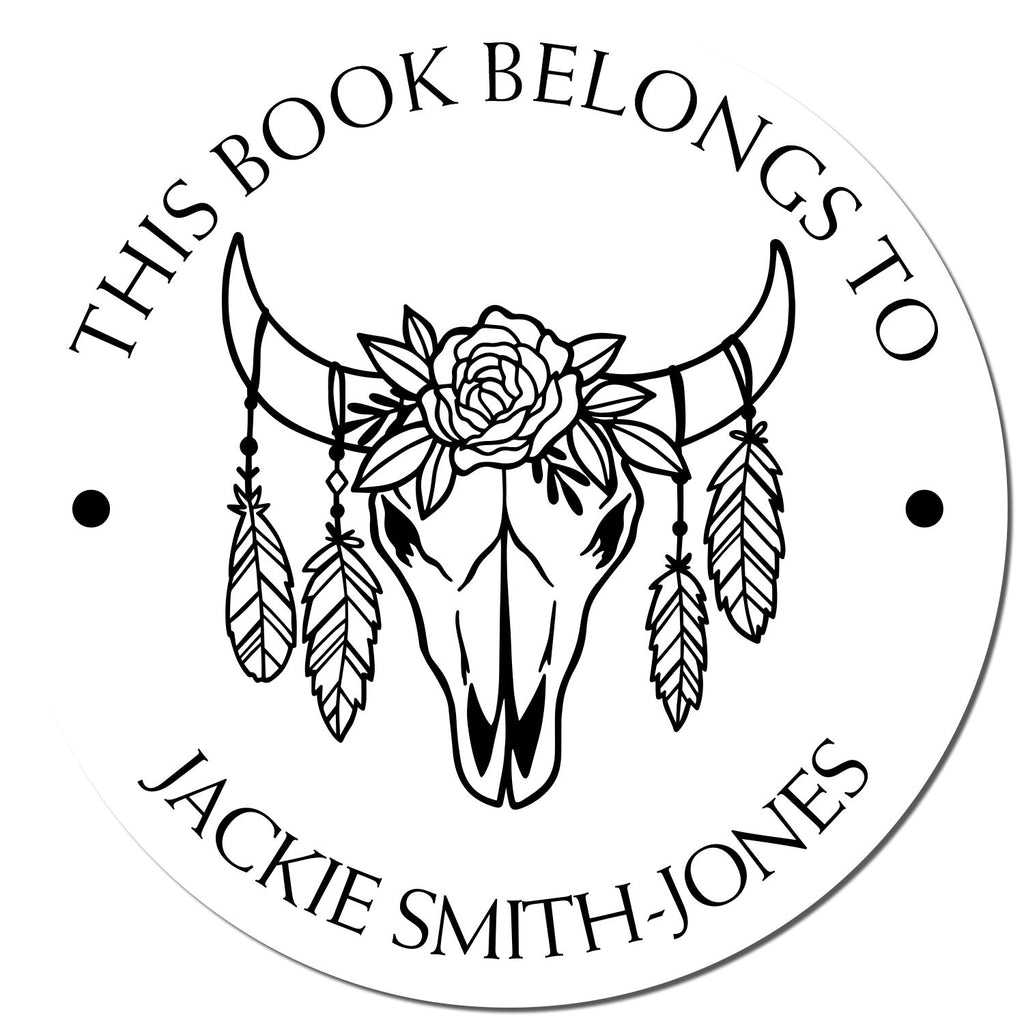Personalize Your Books with Style This isn’t just any stamp; it’s a statement! The Western Wonders My Library Stamp features a stunning design with a center image of a cow skull adorned with beautiful flowers, making it a unique addition to your book collection. The clean round design includes phrases like "This Book Belongs To," "From The Library of," and "Ex Libris" at the top arc, followed by your name or a special saying at the bottom arc. With an impression size of 1-5/8" in diameter, this stamp adds a personal touch that makes each book feel special and cherished.