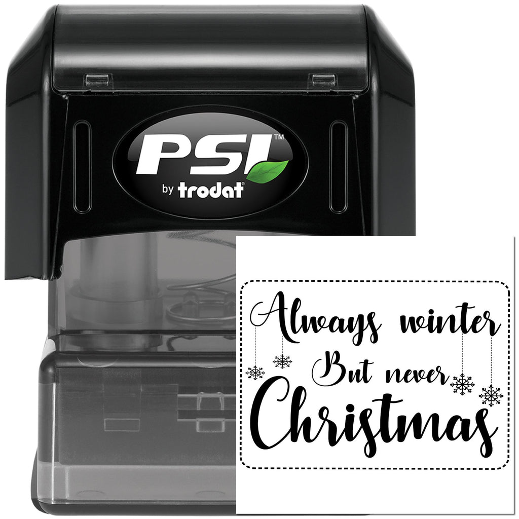 - Inclusive: Perfect for nonreligious winter card makers, teachers and craft groups—this 1-5/8" square pre-inked stamp features the playful “Always winter, but never Christmas” design with dangling snowflakes and a dashed border, so your projects celebrate the season without religious imagery.