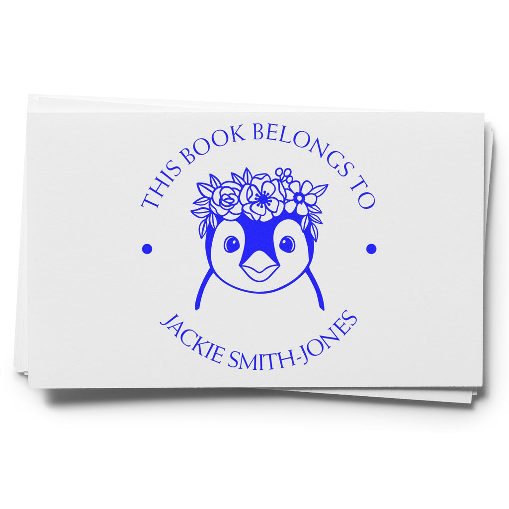 Don't let your beloved books go unmarked – make them distinctively yours with our Pretty Penguin Self-Inking Custom Book Signature Stamp today!
