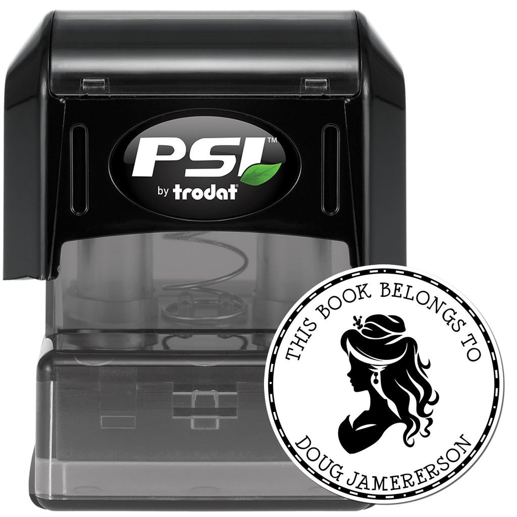 Keywords: personalizable library stamp, customizable book identification stamper, elegant bookplate stamp, PSI Pre-Inked Stamps, Ex Libris stamp.