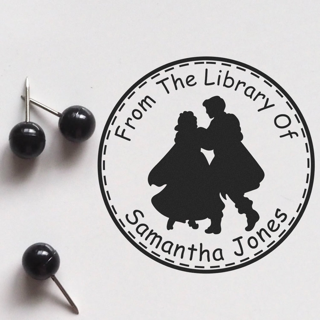 Crafted with care, the Princess Freya stamp features a beautifully designed silhouette of a couple dancing, capturing the timeless elegance of romance. The intricate details of the couple’s attire evoke a sense of nostalgia and charm, making it a perfect addition to any book. Measuring at a convenient size of 1-5/8", this stamp is compact yet impactful, allowing you to personalize your books without overwhelming their aesthetic.