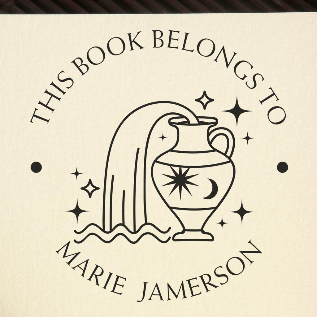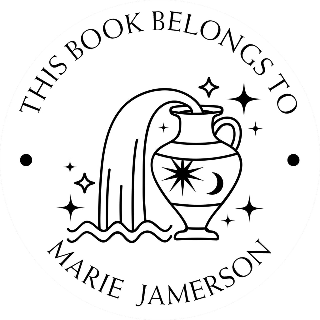 - PERSONALIZED LIBRARY ELEGANCE: Transform your book collection with our Aquarius-themed Ex Libris stamp, featuring a flowing water vase design that adds sophistication to every page. Perfect for marking ownership with artistic flair.