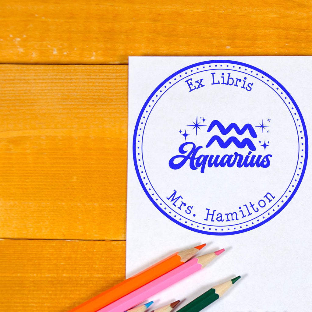 - THEFT DETERRENT PROTECTION: Clearly mark your precious books with this distinctive Aquarius-themed ownership stamp. Features customizable text options including "Ex Libris" or "From the Library of."