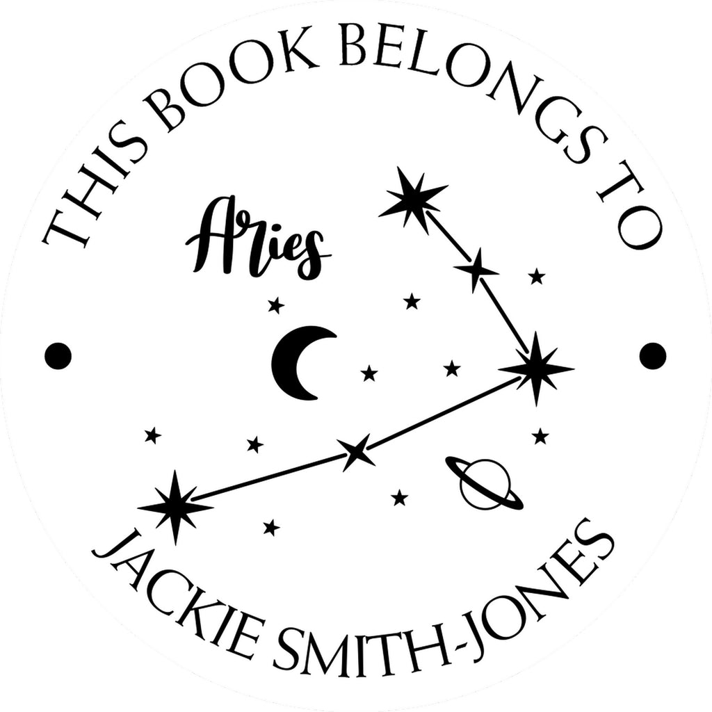 - ZODIAC THEMED DESIGN: Showcase your astrological personality with this unique Aries constellation stamp. Combines celestial elements with customizable text for a truly personal library marking solution.