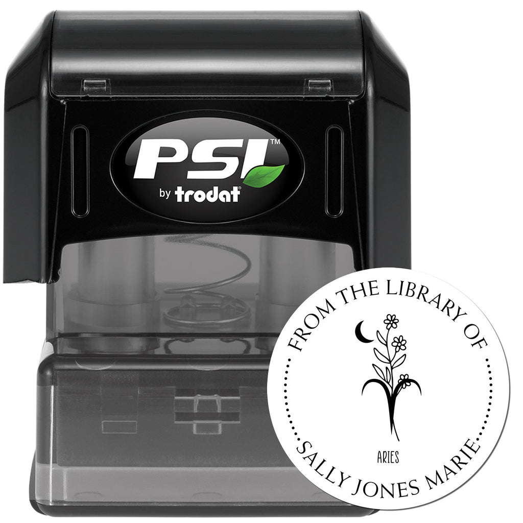 Personalize Your Library with the PSI Pre-Inked Aries Zodiac Symbol with Flowers Love It Stamp!