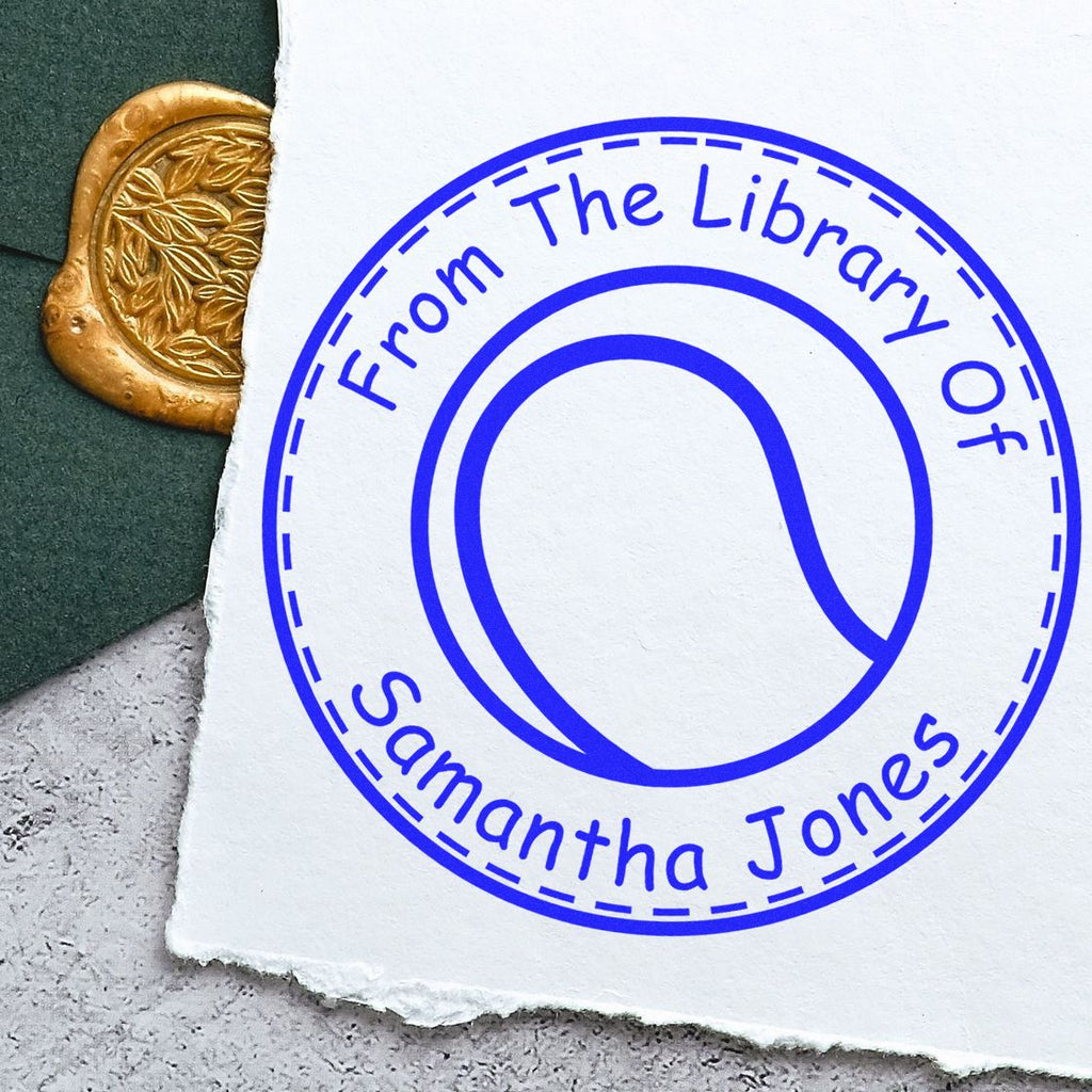 - CUSTOM TENNIS DESIGN: Features an athletic tennis ball motif with elegant double-ring circular border. Personalize with "This Book Belongs To" or "From The Library Of" text in 1-5/8" diameter size.