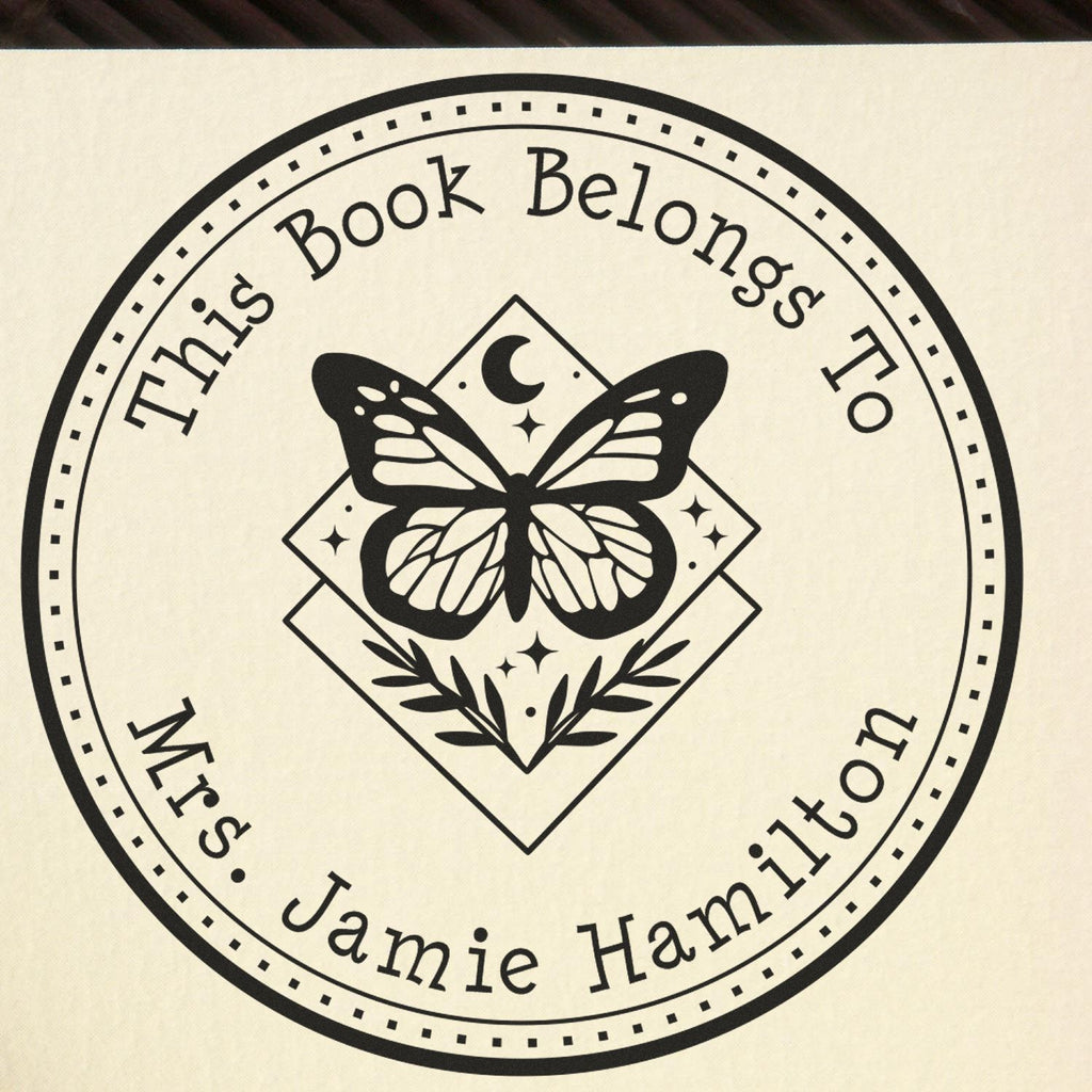 - PERSONALIZED ELEGANCE: Transform your library with this beautifully designed butterfly stamp, featuring a classic three-ring border and customizable text that adds sophistication to every book in your collection.