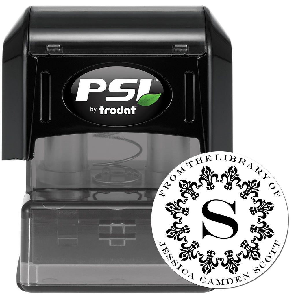 Don’t Settle for Ordinary – Choose PSI Pre-Inked Stamps! Make a lasting impression with every use and let your work speak volumes. Your brand deserves nothing less than the best! The PSI Pre-Inked Bold Initials Custom Made Name Inscription Stamper features a clean round design with phrases such as "This Book Belongs To," "From The Library of," or "Ex Libris" at the top arc, followed by your name or another saying at the bottom arc. With an impression size of 1-5/8" in diameter, this stamp is the perfect size for all your stamping needs.