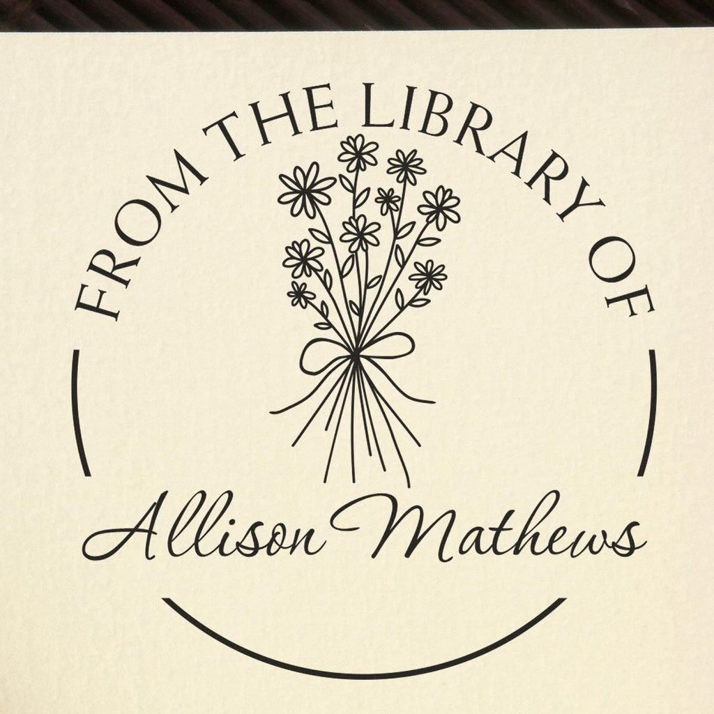 Charming Design for Every Book Lover The 1-5/8" diameter impression size is ideal for personalizing your books with phrases like "This Book Belongs To" or "From The Library of". The elegant design features a lovely bouquet of daisies tied with a string, creating a classic and inviting look. The top arc can be customized with your name or a special saying, separated by a solid line from the bottom arc text, which adds a refined touch to your stamp. This thoughtful design not only enhances the aesthetic of your books but also encourages the return of borrowed items, making it a practical addition to your collection.