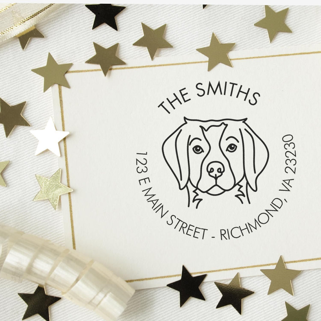 Make your mark with style! Introducing our Custom Brittany Spaniel Address Stamp - the perfect blend of personality and practicality for proud Brittany Spaniel parents. This 1-5/8" round pre-inked stamp features an elegant line art design of your beloved breed, making every piece of mail uniquely yours.