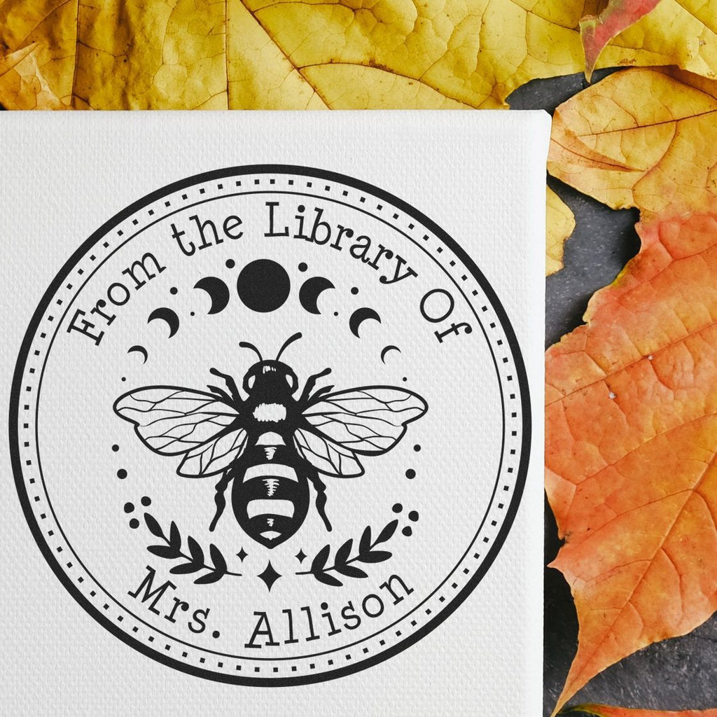 - PERSONALIZATION PERFECTION: Transform your library with our 1-5/8" Celestial Bee stamp, featuring an enchanting design of planets, moons, and a majestic bee. Make your mark with elegance and style.