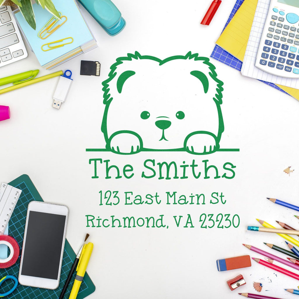 PSI Pre-Inked Chow Chow Puppy Dog Personalized Mailing Label Stamp Highlights and Features