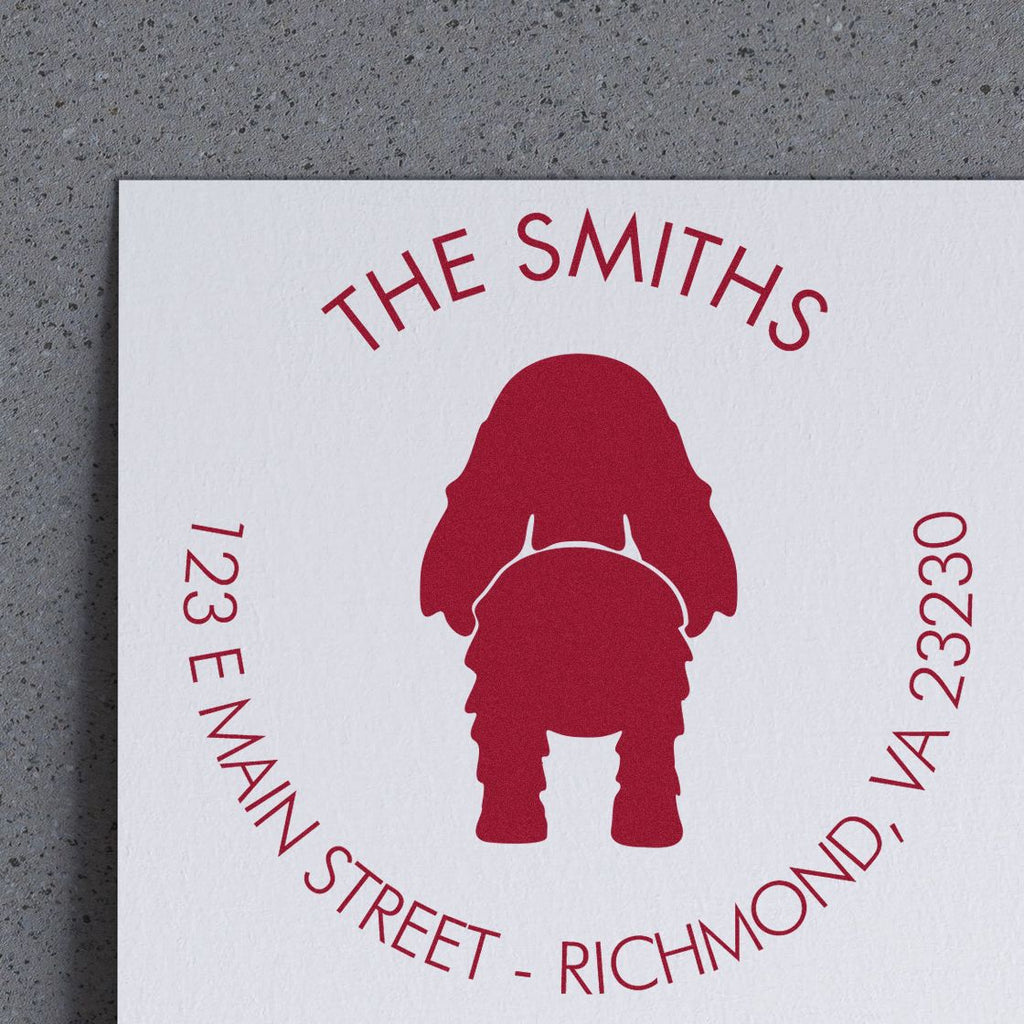 🐾 Calling all Cocker Spaniel lovers! Elevate your correspondence with our stunning Custom Cocker Spaniel Address Stamp, featuring an elegant silhouette of your favorite breed. This 1-5/8" round pre-inked stamper isn't just a practical tool – it's a statement of your passion for these beloved companions!