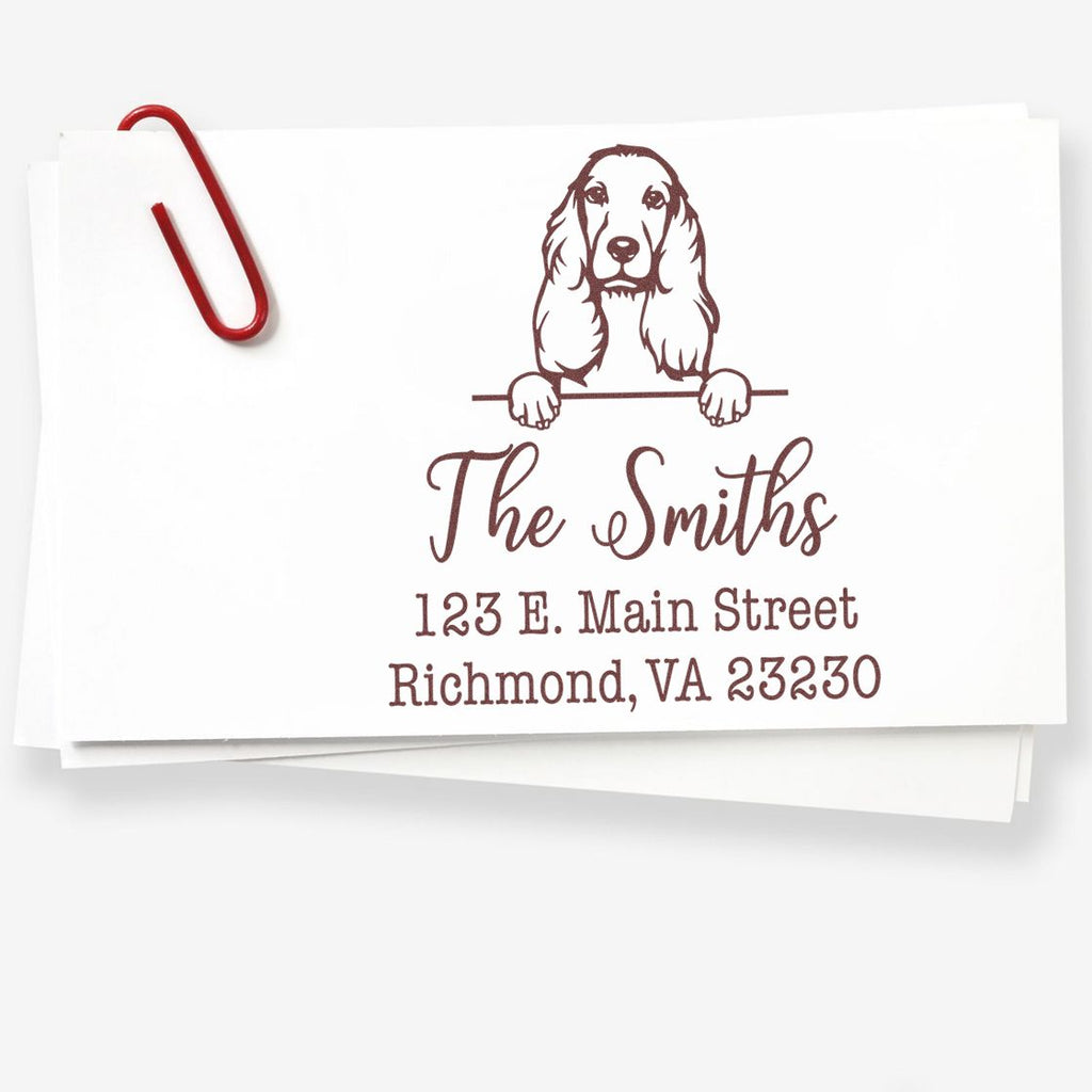 - Transform Your Mailings with our Custom Cocker Spaniel Address Stamp! Effortlessly add a personal touch to your letters and packages, making every correspondence memorable. Perfect for Cocker Spaniel lovers who want to showcase their furry friend!