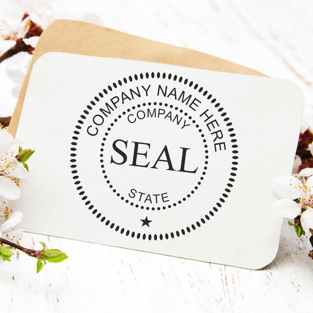 - CUSTOMIZE YOUR SEAL to reflect your business identity! With a classic circular design featuring your company name, state, and a bold "seal" in the center, this stamp is both elegant and functional. Stand out with a personalized touch that represents your brand.