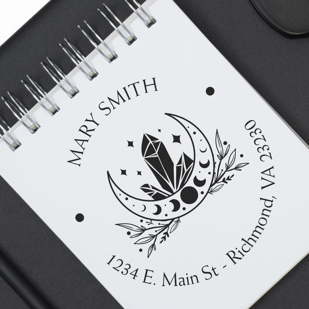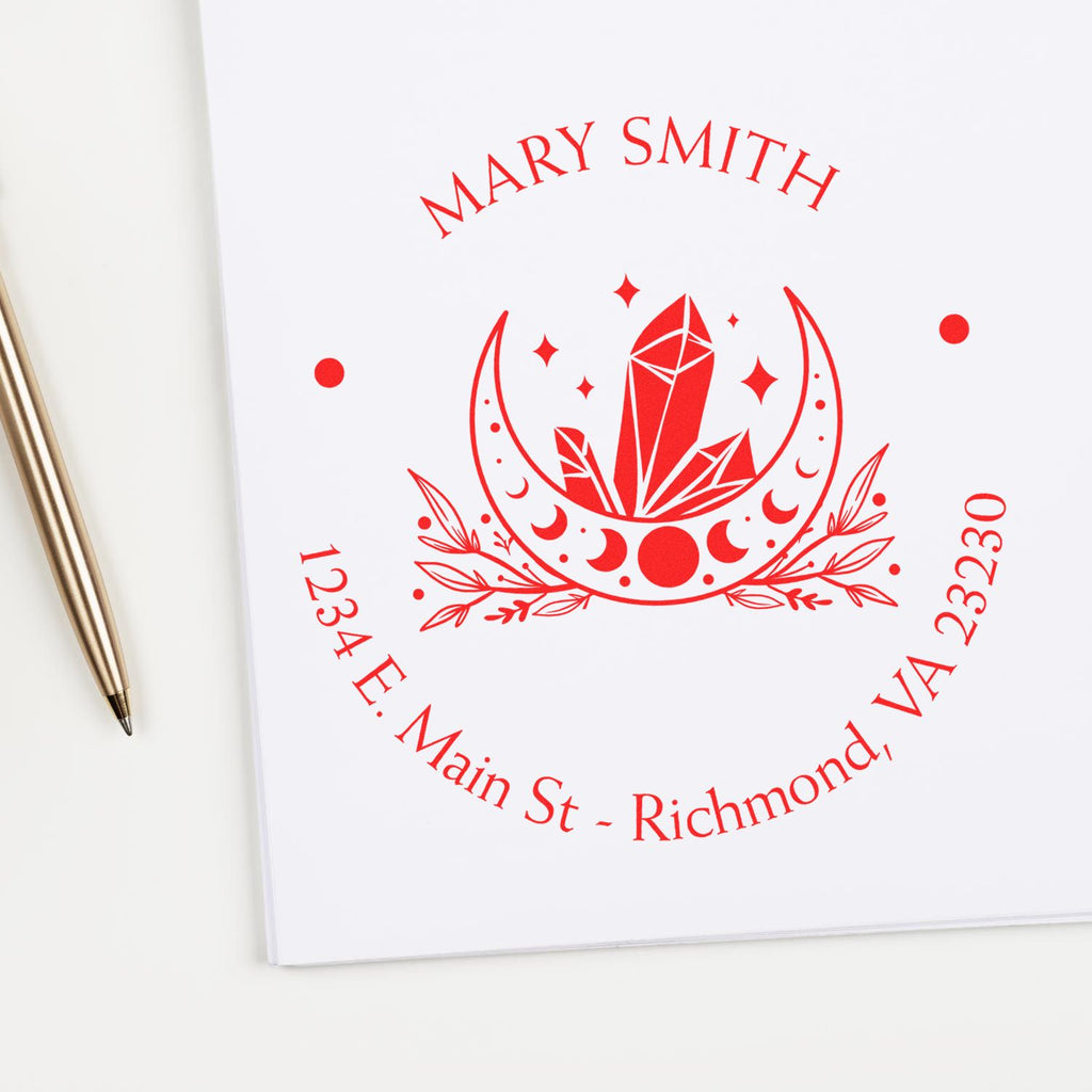 Elevate Your Correspondence with the PSI Pre-Inked Cryptic Moon Personalized Mailing Stamp! Transform your daily tasks into a breeze with our stylish and versatile PSI Pre-Inked Cryptic Moon Personalized Mailing Stamp. This exquisite address stamp is not just a tool; it’s a statement piece that adds a touch of elegance to your correspondence. Whether you’re sending out wedding invitations, business correspondence, or personal letters, this stamp combines functionality with flair, making it a must-have in your toolkit. With a stunning design featuring a Cryptic Moon & Crystals, your mail will stand out in any mailbox!