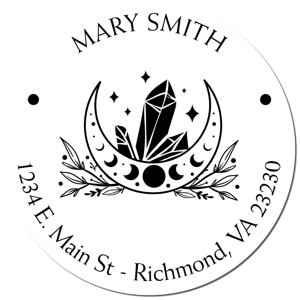 - MYSTICAL DESIGN: Featuring an enchanting Cryptic Moon & Crystals centerpiece, perfectly framed by your personalized text in elegant arcs, separated by stylish dots.