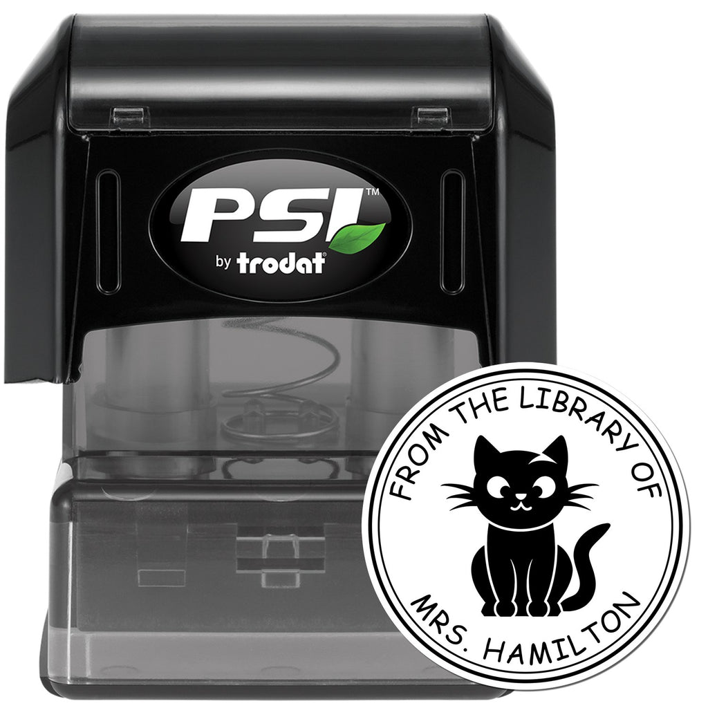 Unleash Your Inner Book Lover with the PSI Pre-Inked Curious Kitty Personalized Return It Stamp!